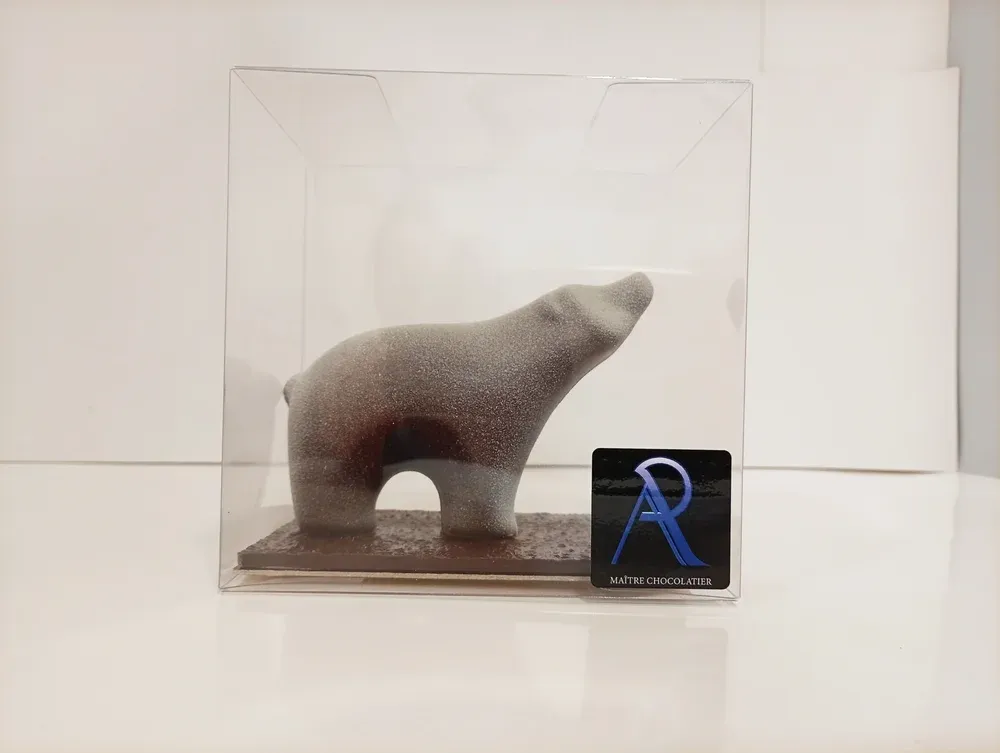 - Ours en chocolat : lait ou noir garni de fruits à croq' tels que des amandes et noisettes torréfiées enrobées de chocolat noir et lait.